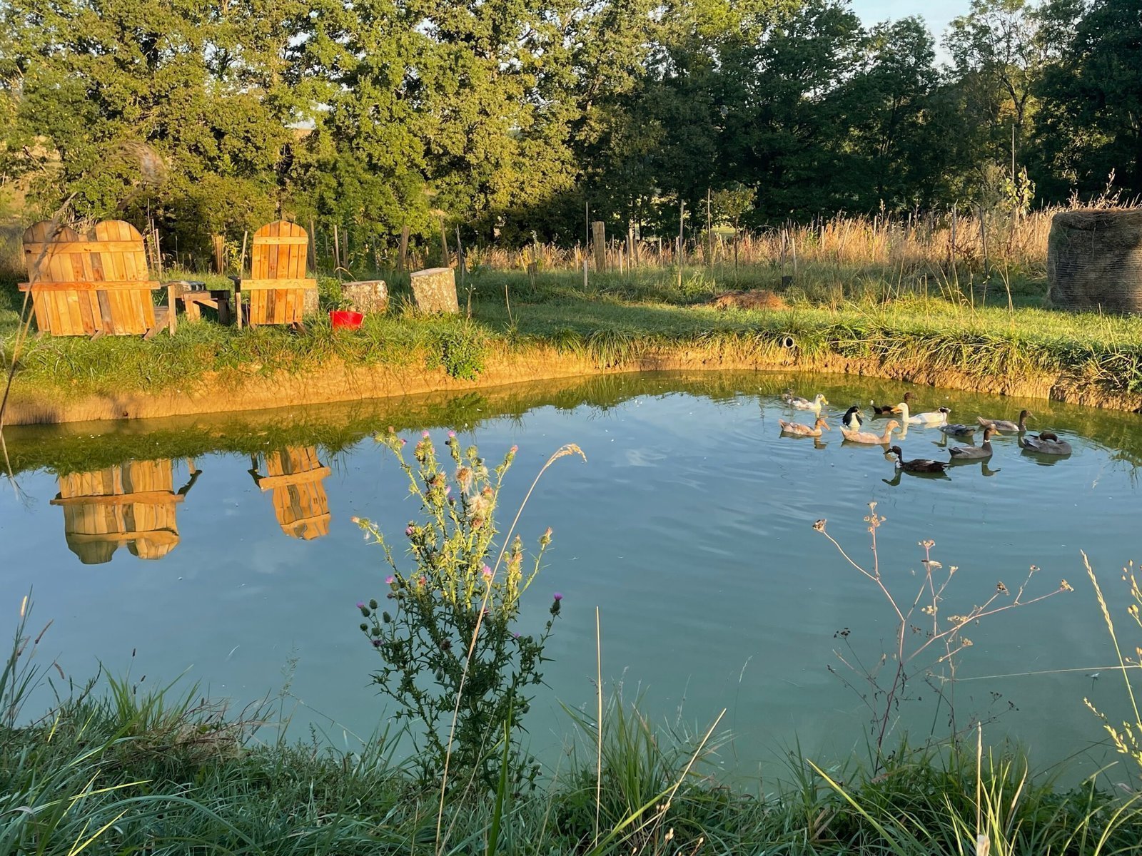 Les mares que nous avons créées attirent un nombre important d’animaux, nous laissons volontairement des bordures sauvages, des ronciers, tas de branches, nichoirs, hibernaculum… pour héberger la biodiversité.
